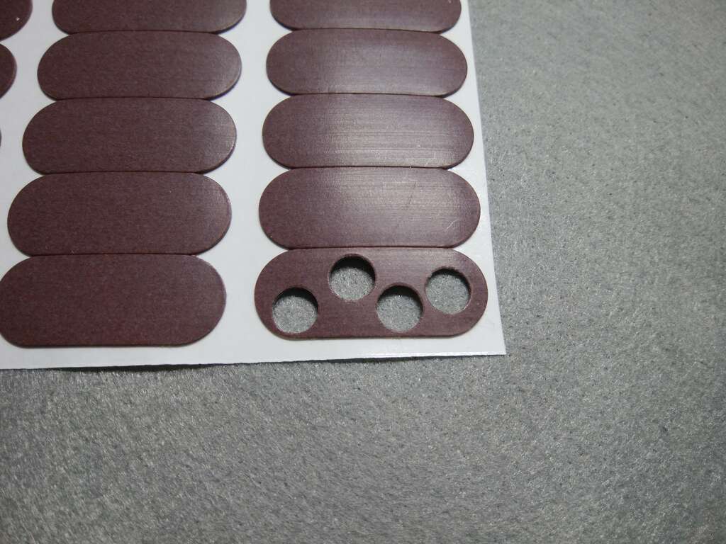 普通のマウスのソールを張り替える際には、紙の上から鉛筆でなぞるなどして型をつくって切り抜くとよいでしょう(向きに気をつけてください)。難しい場合はおおまかな形に切り取るだけでも大丈夫です。硬い素材ではないので、バリは使用に伴って自然に丸められます。見た目を全く気にせず、硬質素材のマウスパッドしか使わないのであれば、元のソール形状を無視してざっくりと四角く切って角を落としたものを貼っても実用上は大差ありません。